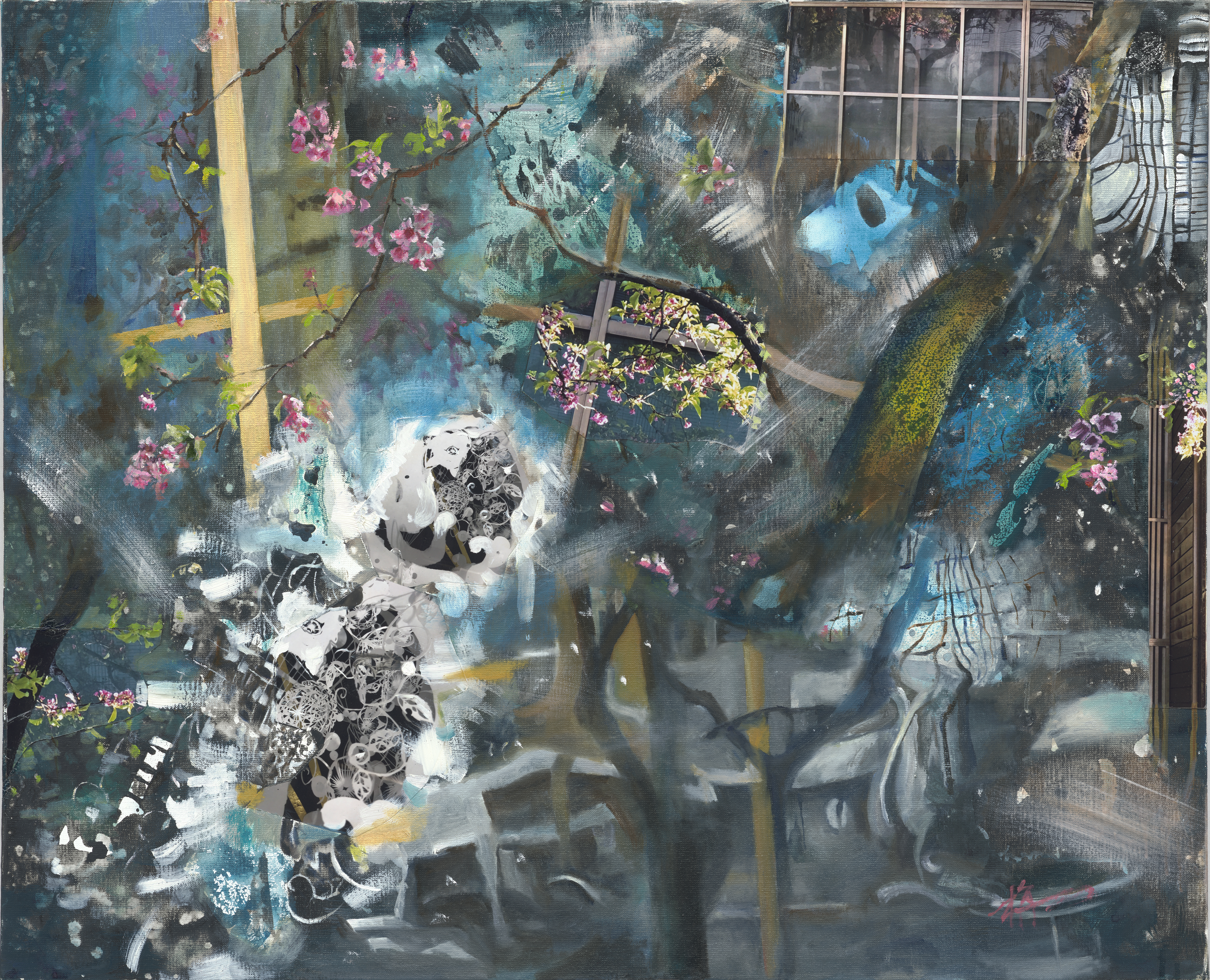當光線經過大質量天體時,會因重力場而彎曲。本圖以異材質和虛實,模擬呼應宇宙中因星系的龐大質量使時空曲折。